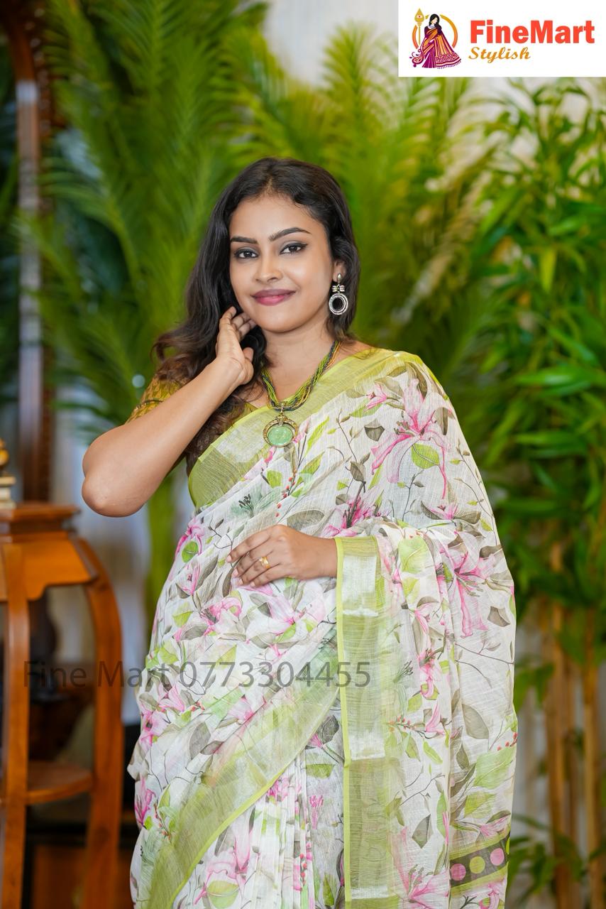 LINEN COTTON SAREE WITH DESIGN BLOUSE