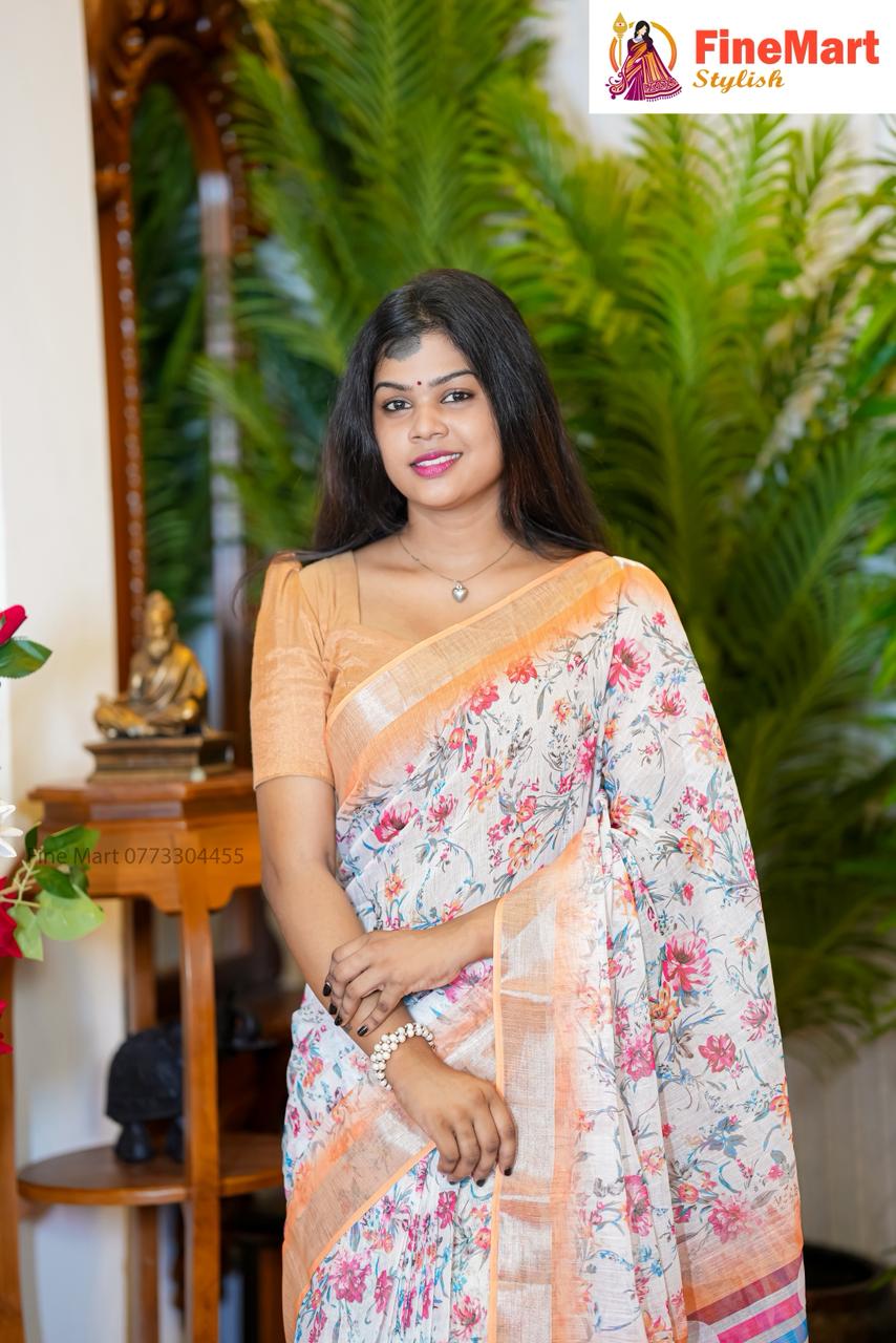 LINEN COTTON SAREE WITH DESIGN BLOUSE