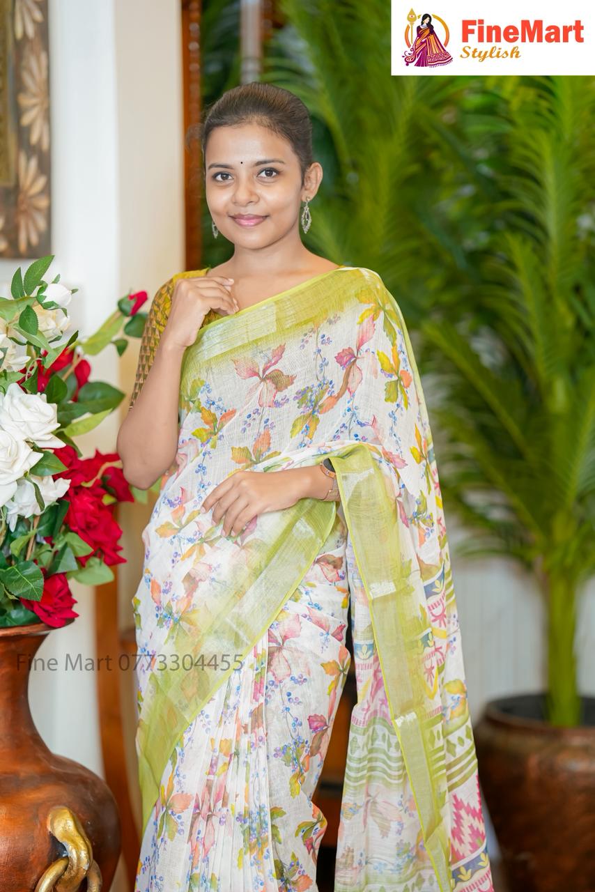 LINEN COTTON SAREE WITH DESIGN BLOUSE