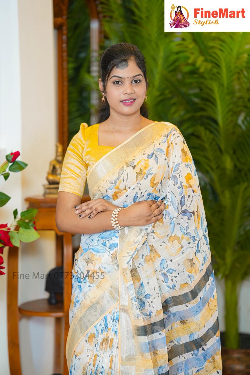 LINEN COTTON SAREE WITH DESIGN BLOUSE