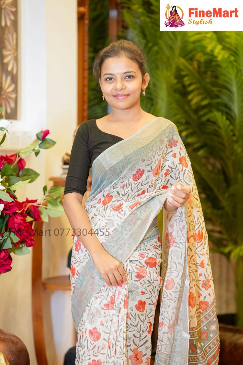 LINEN COTTON SAREE WITH DESIGN BLOUSE