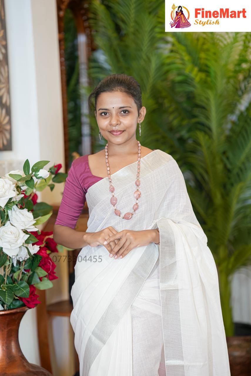 PURE WHITE PLAIN SAREE WITH SILVER BORDER